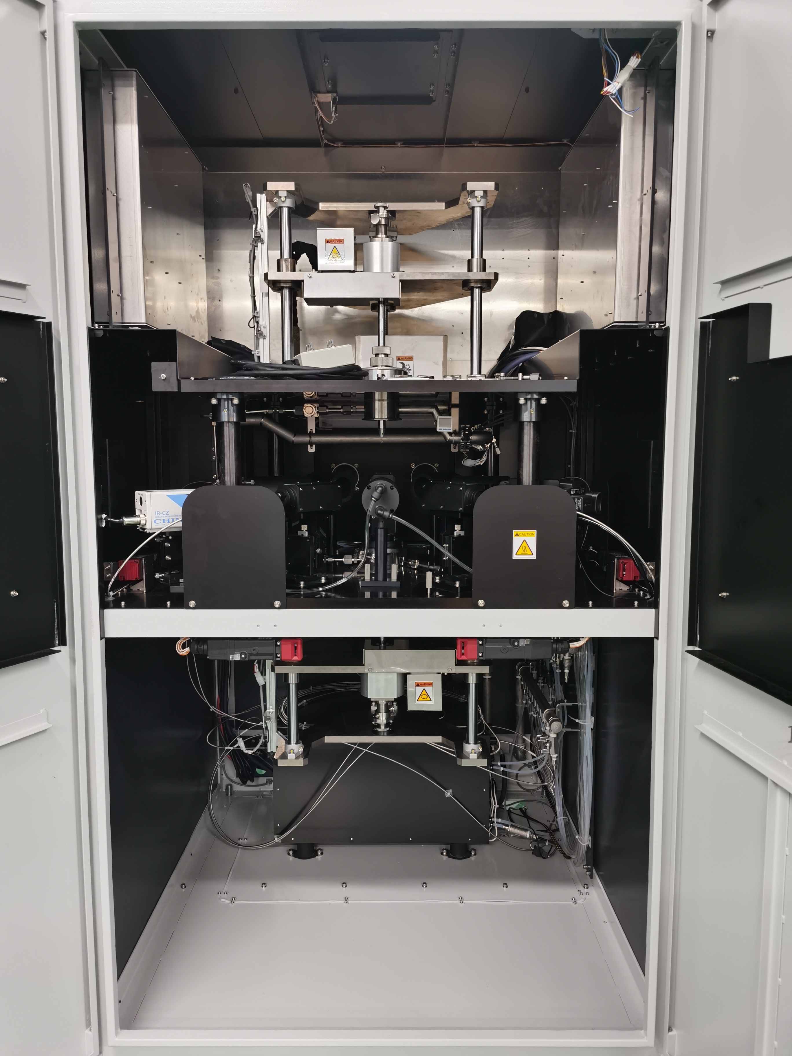 Our newly installed opticla floating zone furnace for single crystal growth: Powered by laser LFZ-1.5kW and Halogen lamp (Quantum Design Japan).